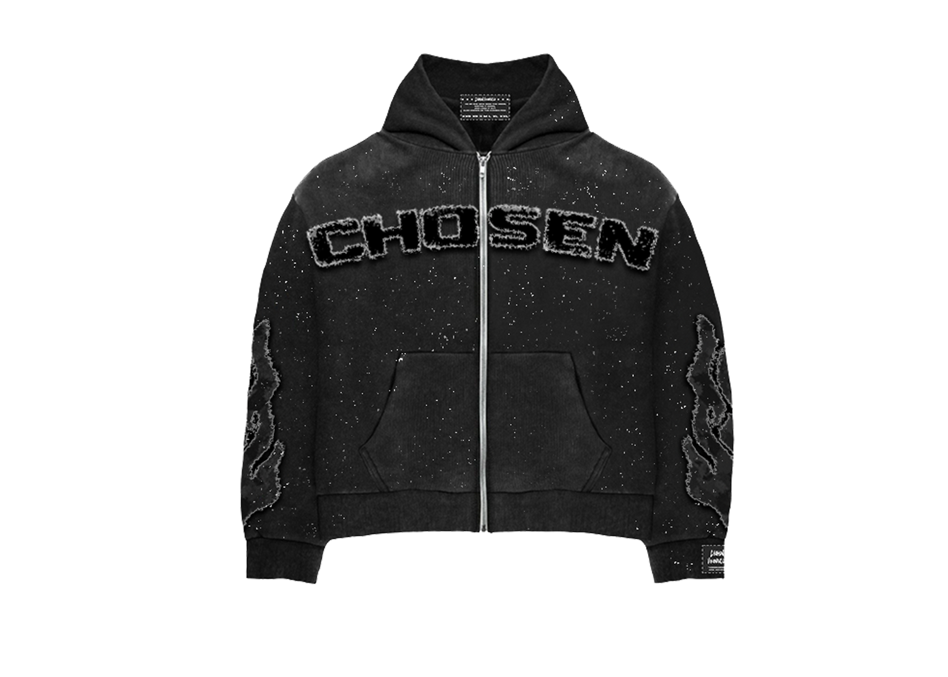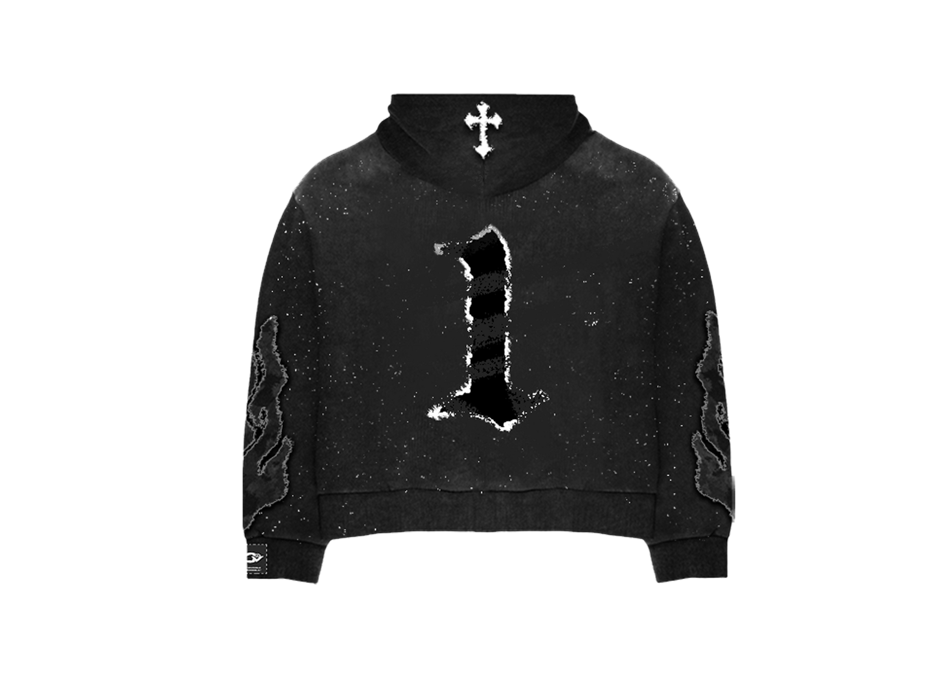 French terry hoodie. Fading and distressing throughout.